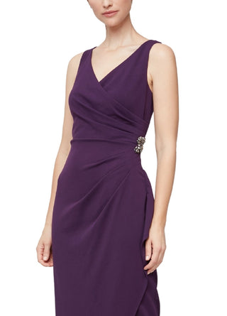 SL Fashions Women's V Neck Tulip Hem Sleeveless Gown Purple Size 12