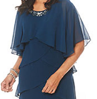 SL Fashions Women's Embellished Tiered Chiffon Dress Blue Size 12
