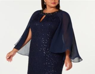 SL Fashions Women's Lace Capelet Gown Blue Size 18W