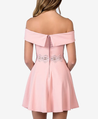 B Darlin Women's Embroidered Off Shoulder Short Formal Fit Flare Dress Pink Size 5-6