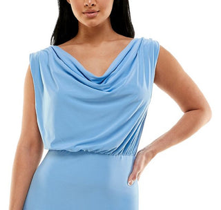 B Darlin Junior's Asymmetrical Cowl Neck Dress Blue Size XX-Small