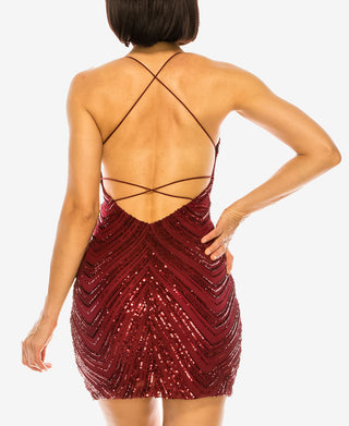 B Darlin Junior's V Neck Sequin Bodycon Dress Red Size 9/10
