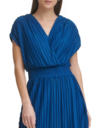 DKNY Women's Pleated Smocked Waist Dress Blue Size 8
