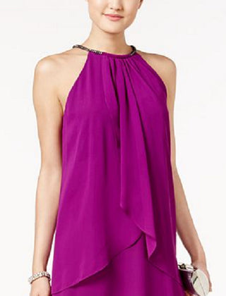 SL Fashions Women's Layered Shift Dress Purple Size 8