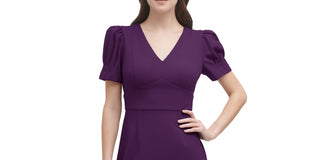 DKNY Women's Puff Sleeve Sheath Dress Purple Size 16