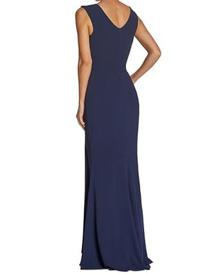Dress the Population Women's Sandra Plunge Crepe Trumpet Gown Blue Size Large