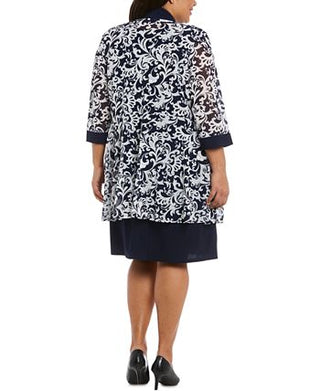 R & M Richards Women's Necklace Dress & Printed Jacket Blue Size 18W