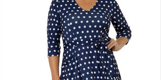 Leota Women's Eliza Belted Dress Blue Size 3X