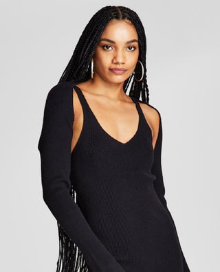And Now This Women's Ribbed Knit Bodycon Dress & Shrug Black Size Medium