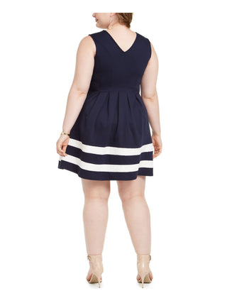 Monteau Women's Striped Skater Dress Blue Size XXX-Large
