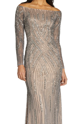 Adrianna Papell Women's Sequin Off The Shoulder Gown Gray Size 14