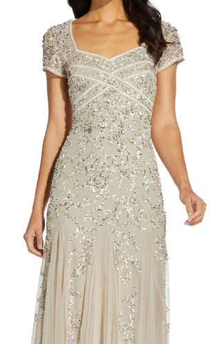 Adrianna Papell Women's Embellished Godet Gown Brown Size 6