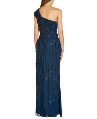 Adrianna Papell Women's Embellished One Shoulder Gown Blue Size 4
