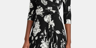 Ralph Lauren Women's Carlyn Floral Print Wear to Work Dress Black Size 18