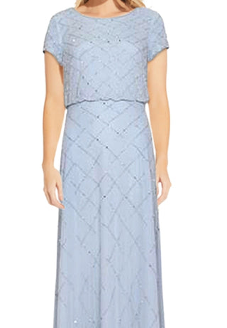 Adrianna Papell Women's Short Sleeve Sequined Gown Blue Size 8