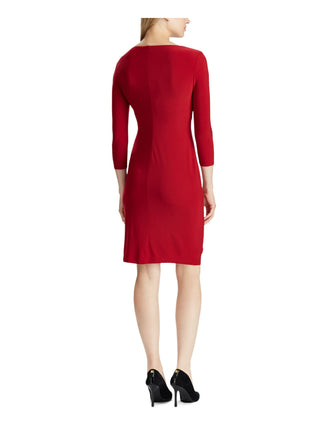 Ralph Lauren Women's Long Sleeve Above The Knee Sheath Dress Red Size 14Petite
