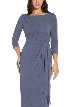 Adrianna Papell Women's Gathered Waist Metallic Threaded Gown Blue Size 8