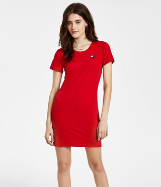 Tommy Jeans Women's Ribbed T-Shirt Dress Red Size Medium