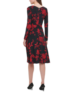 Tommy Hilfiger Women's Floral-Print Fit & Flare Dress Black Size 14