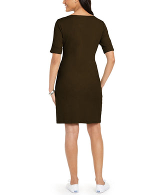 Karen Scott Women's Cotton Cuffed-Sleeve Dress Brown Size Extra Small
