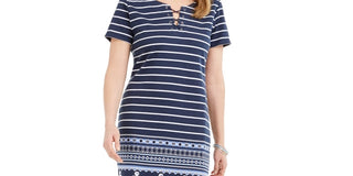 Karen Scott Women's Lace Up Split Neck Dress Navy Size Large