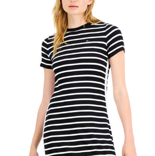 Tommy Hilfiger Women's Striped Colorblock T-Shirt Dress Black Size Medium
