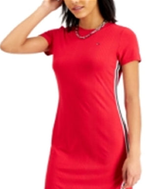 Tommy Jeans Women's Striped Long T-Shirt Dress Red Size X-Small
