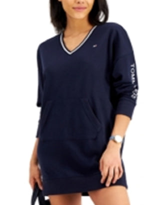 Tommy Jeans Women's V Neck Sweatshirt Dress Blue Size Small