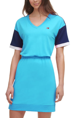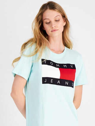 Tommy Jeans Women's Short Sleeve Flag Tee Dress Blue Size Small