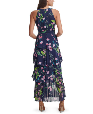 Tommy Hilfiger Women's Chiffon Tiered Halter Maxi Dress Blue Size 10