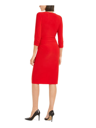 INC Women's Ring-Hardware Ruched MIDI Dress Red Size Small