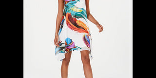 Robbie Bee Women's Printed Chiffon Trapeze Dress -White Size 10 P
