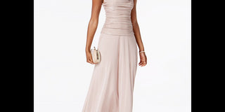 R & M Richards Women's Draped & Ruched Shimmer Gown Brown Size 14
