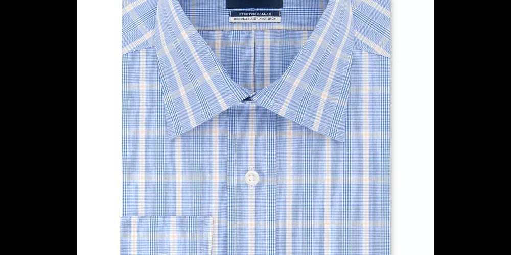 A classic fit; also known as a regular fit; offers a generous cut throughout the chest and waist for overall ease; features standard armholes and fuller sleeves|Non-iron|Spread collar stretches up to 1/2|A traditional Barrel cuff fastened by a single button closure|Plaid pattern; patch pocket at left chest|100% cotton