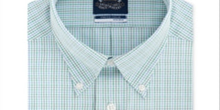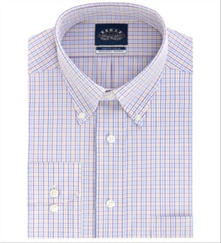 Eagle Men's Blue Windowpane Plaid Collared Classic Fit Stretch Dress Shirt Blue Size 17.1/2X34-35