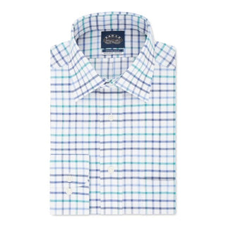 Eagle Men's Classic Regular Fit Non Iron Stretch Collar Check Dress Shirt Blue Size XL