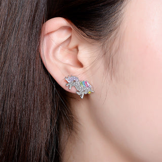 18K White Gold Multi-Colored Unicorn Stud Earrings with crystals from Swarovski