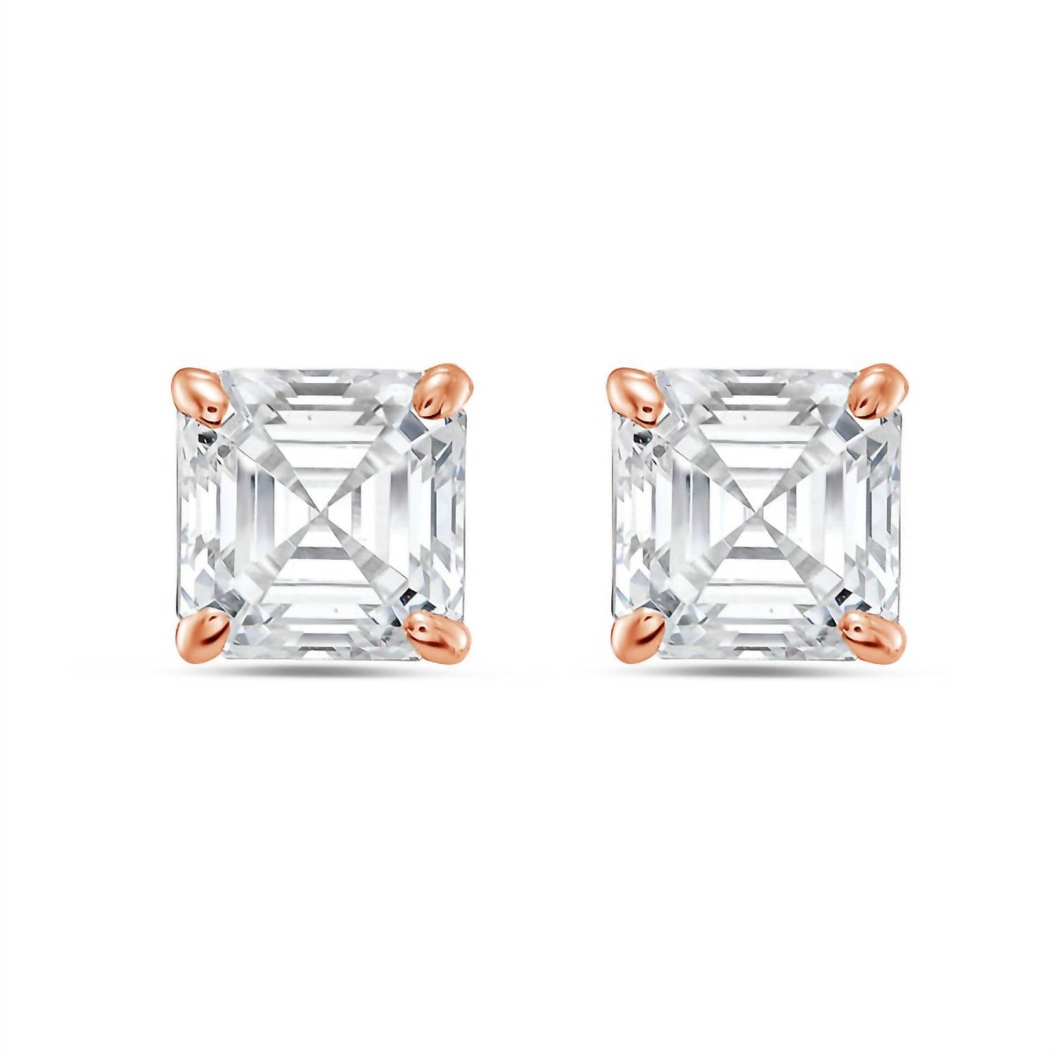 Easy and elegant earrings to complement any outfit. Discover the exquisite 5.00 Cts Lab Grown Asscher Cut Stud Earrings by Diana M Jewels, elegantly set in 14k Rose Gold. These fine earrings feature dazzling lab-grown diamonds with an impeccable DEF color and VS clarity. They are crafted with a 4-prong setting for a secure and shimmering display, showcasing the Asscher cut's exceptional brilliance. Closure: Post. This April birthstone jewelry is a perfect blend of luxury and sustainability.