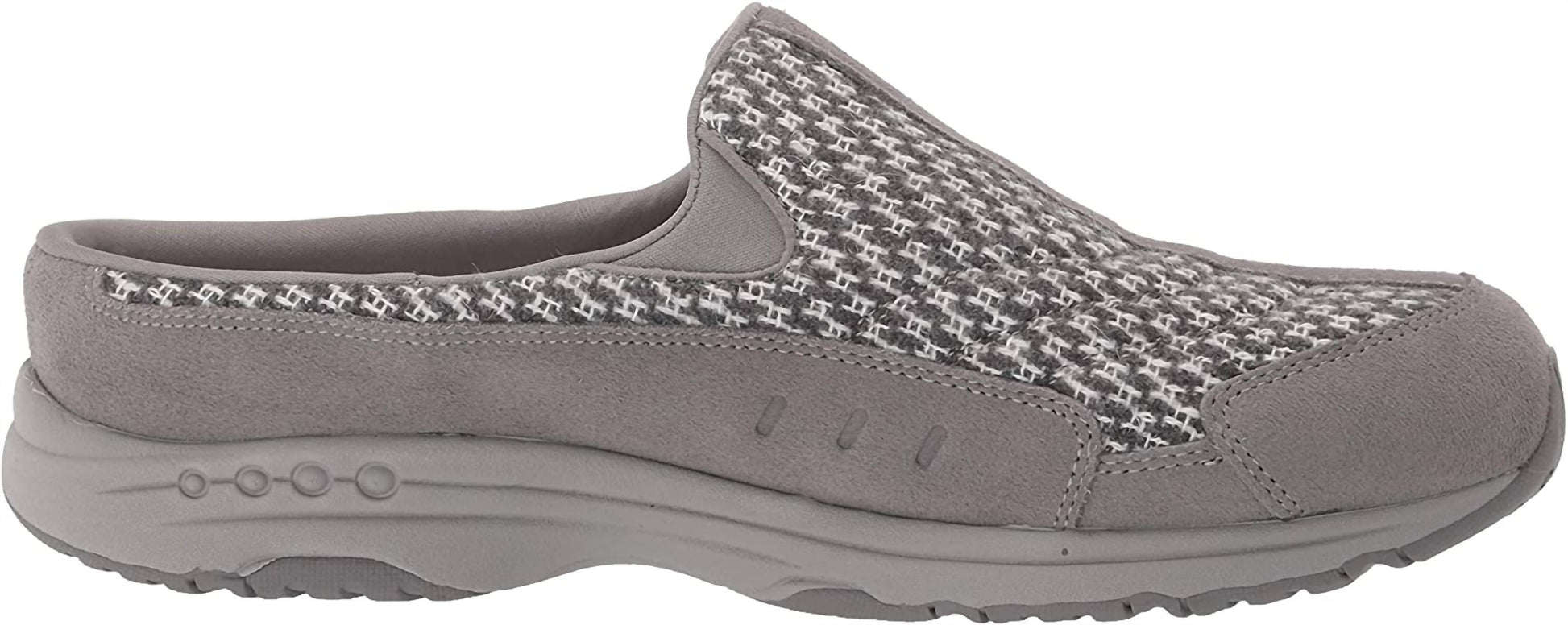 Elevate your everyday style with the Easy Spirit Women's Travel Time Round Closed-toe Mule Clogs in a sleek grey hue. These clogs feature a slip-on design with durable rubber outsoles for excellent traction, ensuring secure footing. The standout feature is the removable cushioned sock liner, which not only absorbs shock but also provides superior arch support for all-day comfort. Made from premium nappa leather, these clogs are perfect for summer streetwear or a Thanksgiving dinner party.