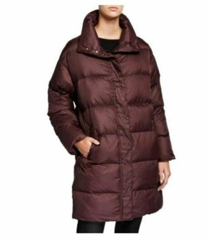 Eileen Fisher Women's Funnel Neck Down Coat Brown Size Petite Large