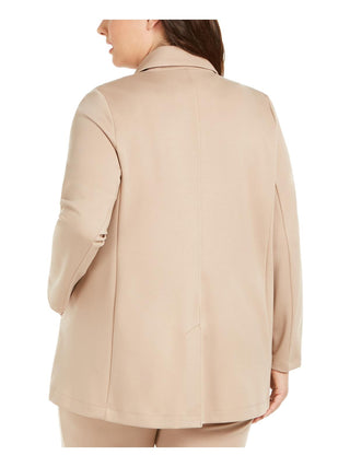 Eileen Fisher Women's Pocketed Notch Collar Back Vent Long Sleeve Wear to Work Jacket Beige Size 2X