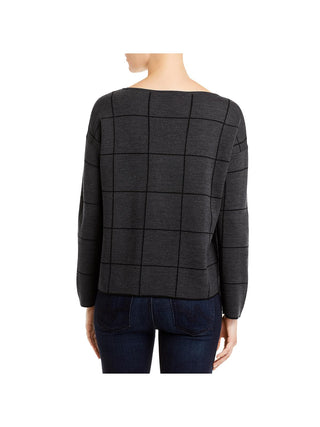 Eileen Fisher Womens Petites Box Top Wool Bateau Neck Charcoal Black - Size Petite Large