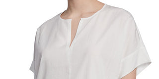 Eileen Fisher Women's Slit Neck Short Sleeve Boxy Sandwash Tunic White Size L