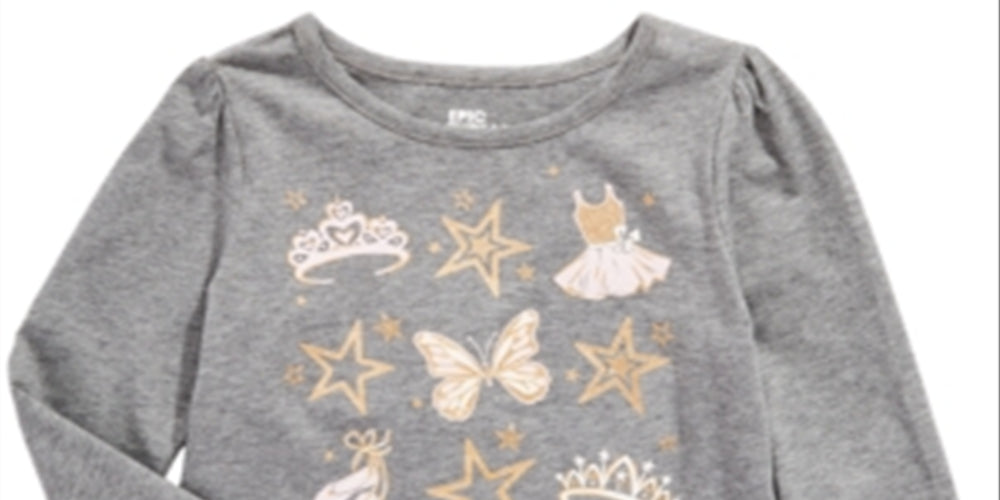 Sweet and sparkly| A fun and glittery ballet-themed print decorates the fun of this cozy long-sleeve T-shirt by Epic Threads