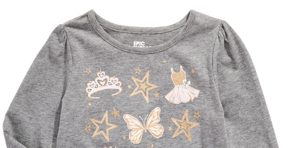 Scoop neckline|Ballet dresses; stars; crowns and butterfly graphic prints at front|Cotton/polyester|Machine washable|Imported