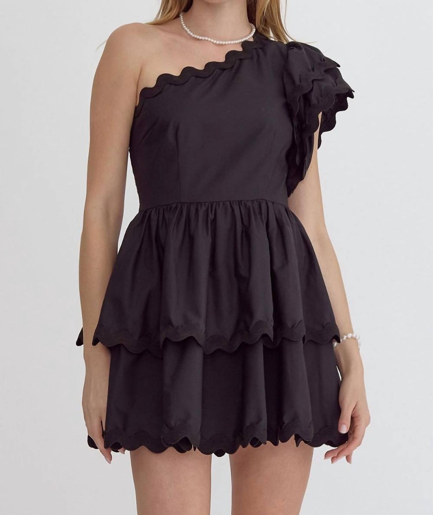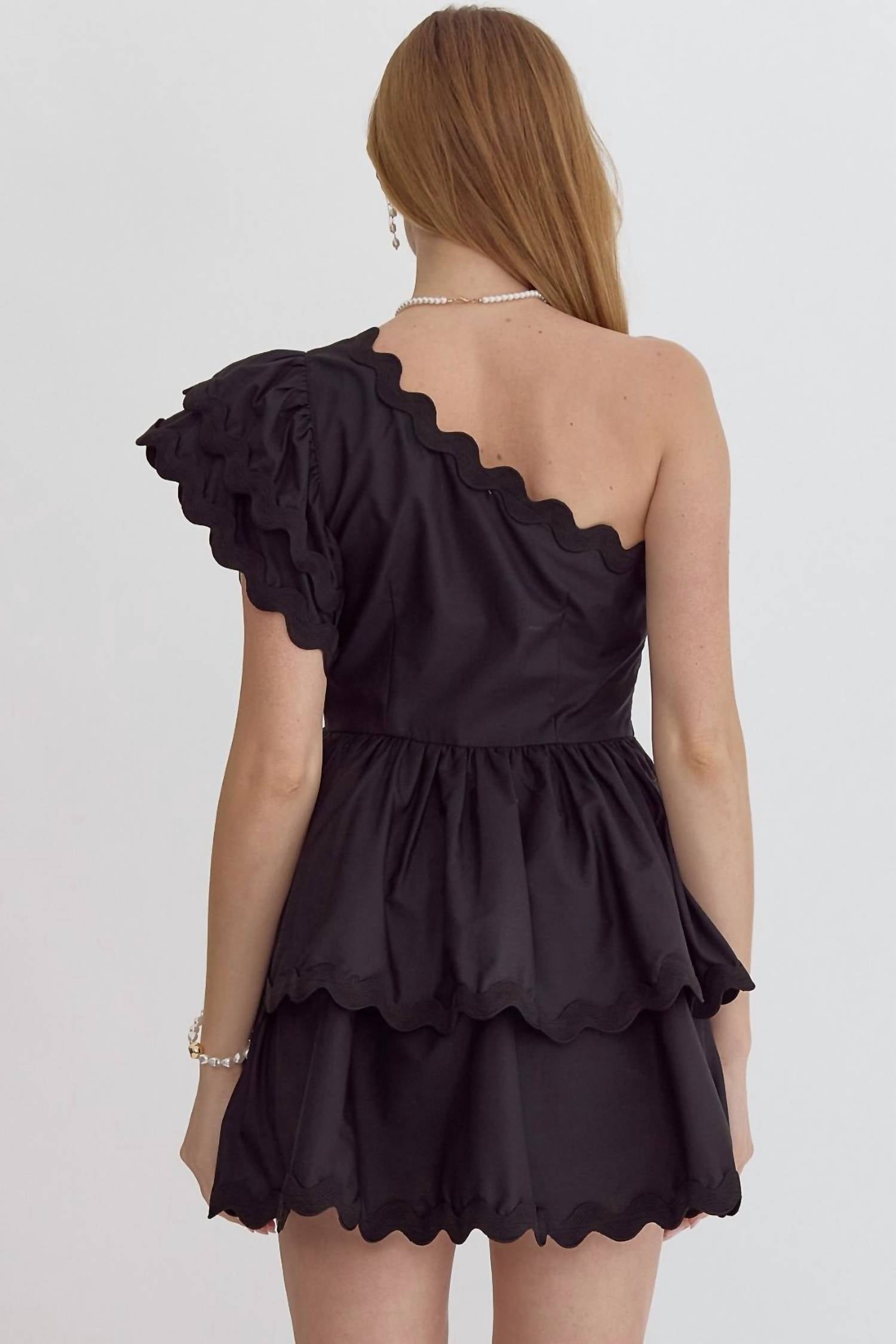 The kind of easy and flattering dress you'll be reaching for all season long.This One-Shouldered Mini Dress features a trendy A-line silhouette, cap sleeves, and a pull-on closure. Made from durable 65% Polyester 35% Cotton with a lined shorts layer, it offers a sleek, non-sheer finish for versatile elegance.
