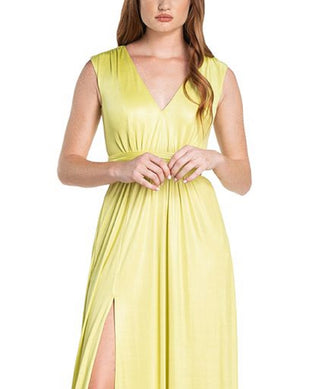 Dress The Population Women's Krista Plunge Neck Side Slit Gown Yellow Size XX-Small