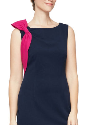 SL Fashions Women's Bow Detail Sheath Dress Blue Size 8