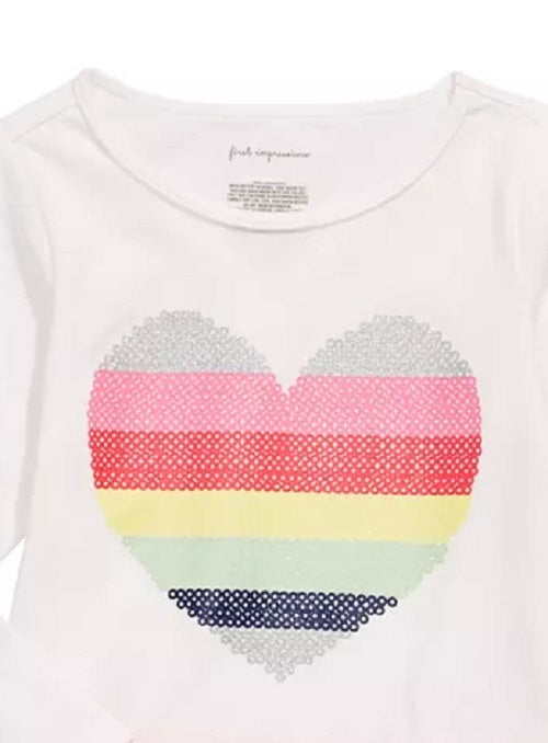 First Impressions Baby Girl's Cotton Rainbow Heart Peplum T-Shirt White Size 18 Months