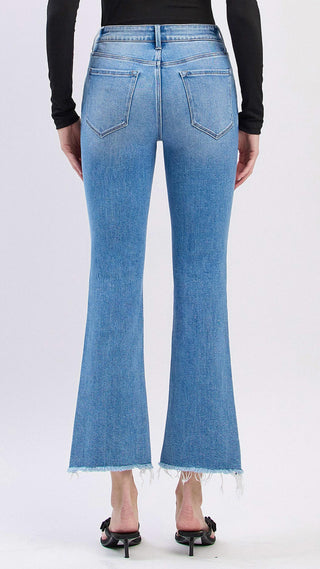 Flying Monkey - High Rise Slant Raw Hem Crop Flare Jeans